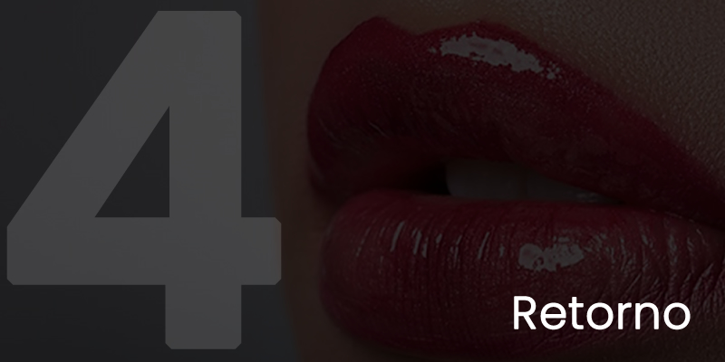 Recomendamos evitar atividades físicas intensas, exposição ao sol e calor, e massagear ou pressionar os lábios nas primeiras 24 horas. É importante seguir todas as orientações do seu profissional.
